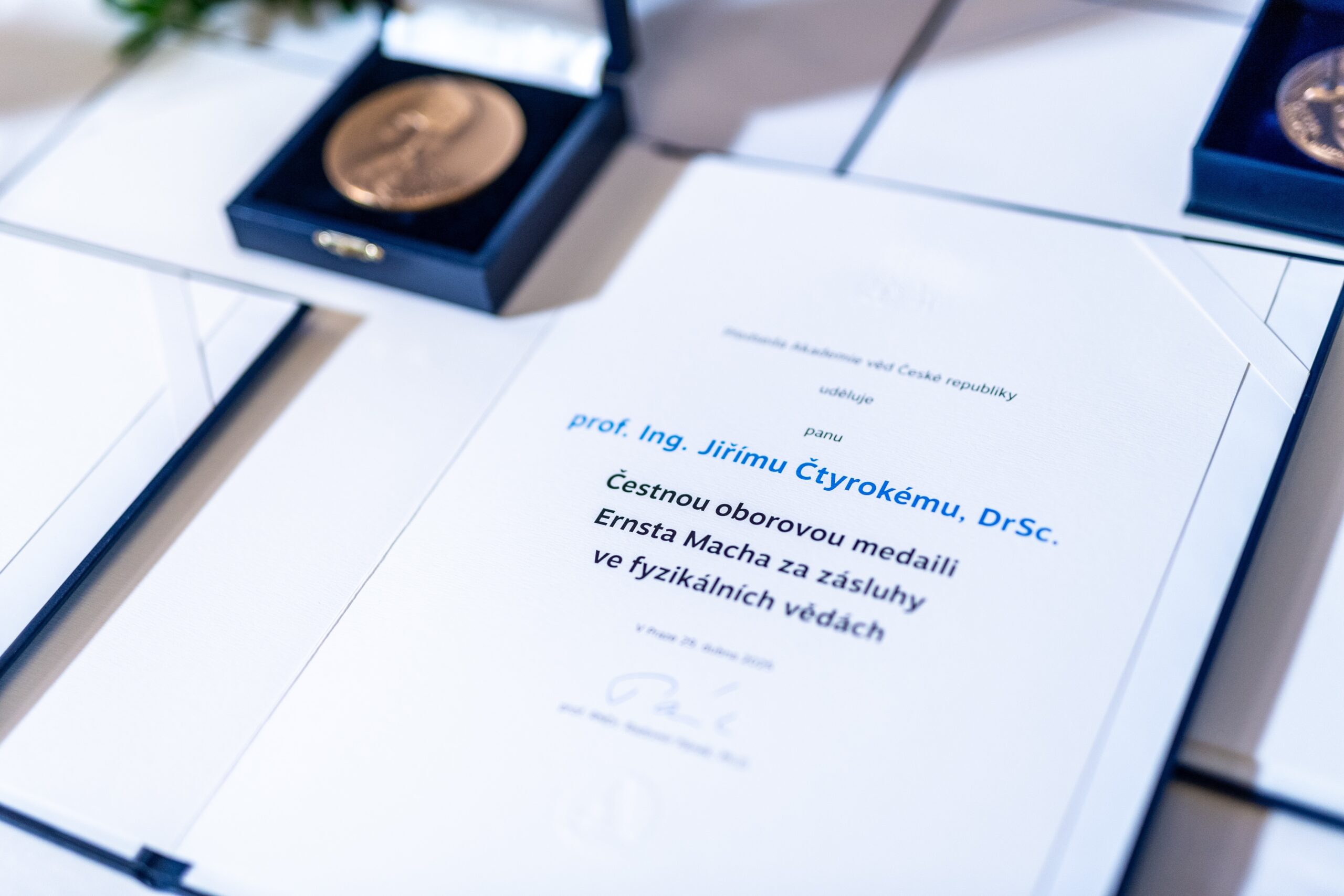 Pan profesor Jiří Čtyřoký získal čestnou oborovou medaili Ernsta Macha za zásluhy ve fyzikálních vědách, kterou uděluje Akademie věd České republiky. Profesor Čtyroký působí na katedře laserové fyziky a fotoniky FJFI a současně v Ústavu fotoniky a elektroniky AV ČR, kde se dlouhodobě věnuje integrované optice – oboru, který pomáhá přenášet elektrické signály prostřednictvím světla a stojí za rozvojem moderní optické komunikace. Někdejší předseda Vědecké rady AV ČR, který se významně podílel na rozvoji Akademie věd ČR, přispěl také například k vývoji elektrooptických modulátorů, bez nichž by současné datové přenosy nebyly možné. Gratulujeme!